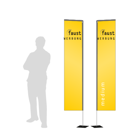 Die Beachflag Rechteck Medium von Faust Printshop in Bensheim bietet genügend Platz für Aufdrucke, welche dank der Rechteck-Form besonders gut zur Geltung kommen. Damit sichert die Fahne sich die Aufmerksamkeit der Passanten und ist so ideal als Wegweiser oder zur Kommunikation von Botschaften geeignet, beispielsweise auf Messen oder Events, vor Autowerkstätten, an Ständen in der Fußgängerzone oder als Außenwerbung vor dem Einzelhandel. Die Fahne ist vielseitig einsetzbar und sowohl für einmalige Verwendungen wie Geschäftseröffnungen oder Produktvorstellungen als auch als dauerhafter Werbeträger geeignet.