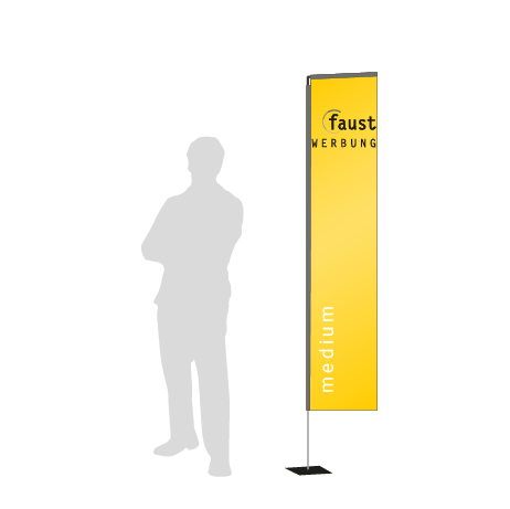 Die Beachflag Rechteck Medium von Faust Printshop in Bensheim bietet genügend Platz für Aufdrucke, welche dank der Rechteck-Form besonders gut zur Geltung kommen. Damit sichert die Fahne sich die Aufmerksamkeit der Passanten und ist so ideal als Wegweiser oder zur Kommunikation von Botschaften geeignet, beispielsweise auf Messen oder Events, vor Autowerkstätten, an Ständen in der Fußgängerzone oder als Außenwerbung vor dem Einzelhandel. Die Fahne ist vielseitig einsetzbar und sowohl für einmalige Verwendungen wie Geschäftseröffnungen oder Produktvorstellungen als auch als dauerhafter Werbeträger geeignet.