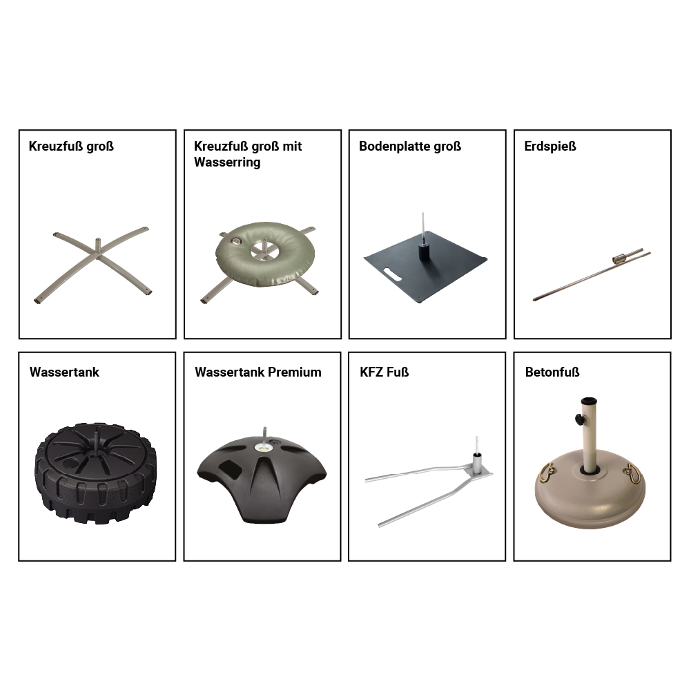 Dank der verschiedenen Standfüße, die für die Fahne erhältlich sind, kann der Standfuß an die jeweilige Größe, den Standort und den Untergrund angepasst werden, damit die Fahne überall stabil und sicher steht - egal ob auf Asphalt, Rasen, Sand oder Schnee. Soll die Fahne auf dem Boden stehen, so kann zwischen Kreuzfüßen, Bodenplatten, Wassertank, KFZ-Fuß oder ein Betonfuß gewählt werden, soll sie im Boden verankert werden, empfiehlt sich die Verwendung eines Erdspießes. Bei Kreuzfuß und Bodenplatte kann zur zusätzlichen Beschwerung ein Wasserring verwendet werden, um die optimale Standfestigkeit zu gewährleisten. Bei guter Pflege kann die Fahne eine Lebensdauer von sechs bis acht Monaten erreichen.