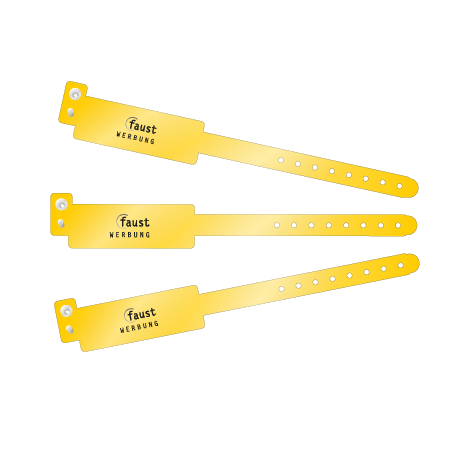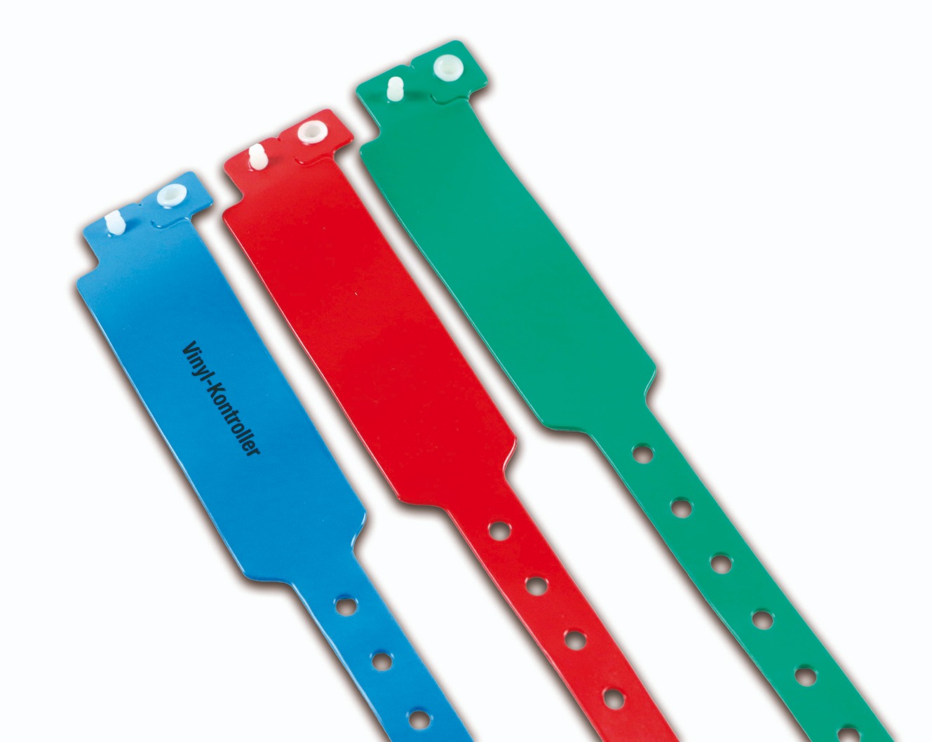 Bedruckte Einlassbänder von Faust Printshop in Bensheim aus Vinyl, höchster Tragekomfort, nicht übertragbar in 21 Farben.